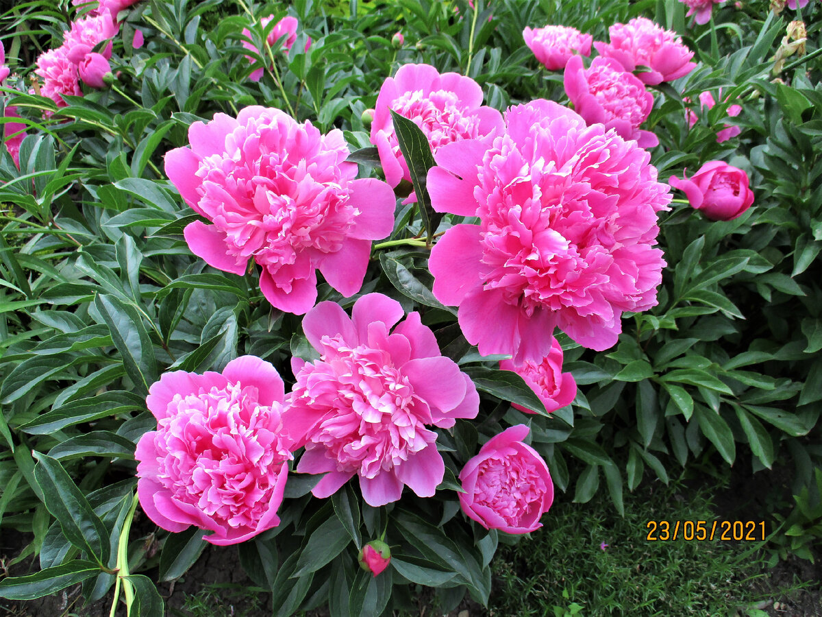 У меня есть такая примета- если расцвели пионы, то обязательно будет дождь или настоящий ливень. 23 мая они были вот такие красивые, только начали распускаться. Нас в этом году дожди заливают уже 3 месяца. Для всех растений это очень хорошо. Всё прекрасно растёт, но есть такие цветы, которые всегда , каждый год попадают под ливни. Даже в прошлом году, когда была засуха и за всю весну не было дождей, то во время цветения пионов пошёл дождь . Для того, чтобы пионы не распадались во все стороны во время дождей и не лежали "лицом в салате", я их всегда связываю. Не люблю никаких опор, которые видно. Могу единично поставить невысокую арматуру, когда слишком высокие кусты и требуется более серьёзная опора. Сад мой находится в Краснодарском крае. 23 мая я все цветущие кусты связала. Кусты связываю по- разному. Так как кусты есть и большие , с множеством стеблей и небольшие. На высоте примерно 30 см от земли я связываю кусты или часть куста шпагатом, верёвкой, довольно крепко. Большие к