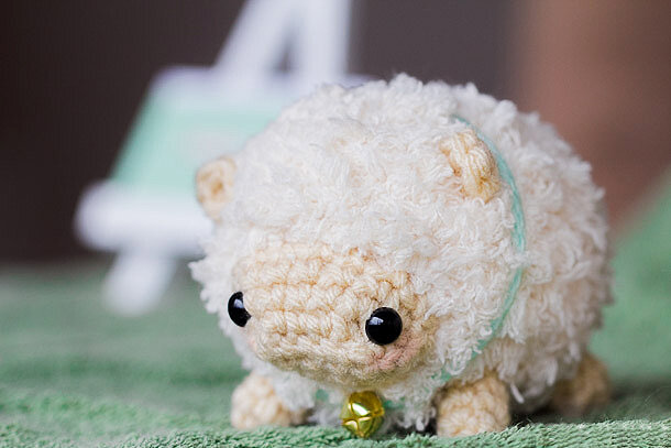 (# ) - количество петель в ряду Тело: 5 сбн в кольцо амигуруми. Р 1: прибавка: 2 сбн в каждую петлю (10) Р 2: *1 сбн, 2сбн в следующую петлю* - 5 раз (15) Р 3: *2 сбн, 2 сбн в следующую петлю* - 5 раз (20) Р 4: *3 сбн, 2 сбн в следующую петлю* - 5 раз (25) Р 5: *4 сбн, 2 сбн в следующую петлю* - 5 раз (30) Р 6: *5 сбн, 2 сбн в следующую петлю* - 5 раз (35) Р 7-10: провязать по кругу без прибавок (35) Р 11: *5 сбн, 1 сбн убавить (провязать 2 столбика вместе)* - 5 раз (30) Р 12: *4 сбн, 1 убавить* - 5 раз (25) Р 13: *3 сбн, 1 убавить* - 5 раз (20) Р 14: *2 сбн, 1 убавить* - 5 раз (15) Тело овечки начинает потихоньку сужаться. Поэтому нужно начать его набивать. Продолжайте вязать по принципу 14 ряда и набивайте туловище, пока отверстие не закроется. Мордочка: Основание: цепочка из 5 вп. Р 1: 1 вп, по 1 сбн в каждую петлю вокруг цепочки (11) Р 2: прибавить 1 сбн, 3 сбн, прибавить 1 сбн, до конца ряда без прибавок (13) Р 3: прибавить 1 сбн, 5 сбн, прибавить 1 сбн, до конца ряда без прибавок