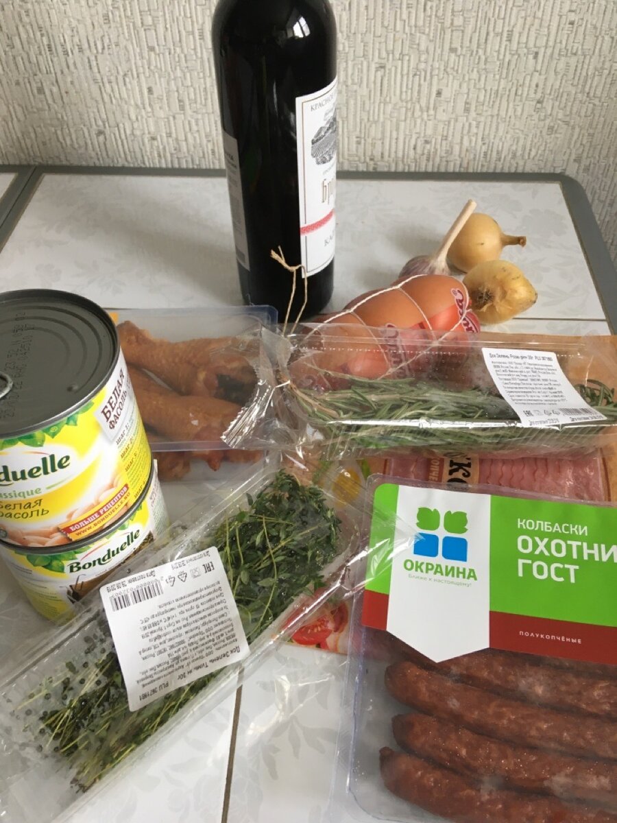 Всем привет! Я на связи. У нас на Севере очень сложно достать все продукты для приготовления этого блюда, поэтому приходиться довольствоваться тем, что есть в наличии. Я покажу Вам "вариацию на тему "касуле"". Вообще, касуле - это блюдо кухни Франции, а точнее ее юга, области Лангедок. Есть какая-то легенда, связанная с войной и осадой города, когда защищавшиеся жители сготовили в одном глиняном горшке то, что каждый из них принес. Так и зародилось это блюдо - то ли густой суп, то ли рагу. Подробностей не помню. Рецепт взят мной из любимого журнала "Гастроном" и адаптирован. Итак, погнали! Нам понадобится много мясных продуктов и фасоль. Это основные ингредиенты. Еще понадобятся овощи - лук, морковь и чеснок, а также красное вино, банка томатов в собственном соку и специи. Свинину нарезаем небольшими кубиками. В глубокую сковороду на дно выкладываем ломтики бекона, сверху выкладываем кубики свинины, ставим на огонь. Наш бекон нагревается и вытапливает жир, на котором начинает готовитьс