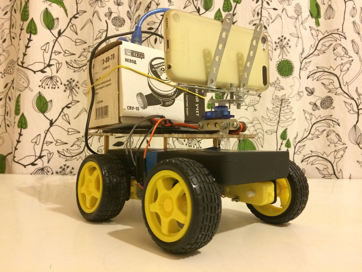 Получился не совсем полноценный робот, ведь в этой версии им приходится управлять. Дальше в планах сделать ему управление через Интернет или обвешать датчиками и сделать бота, который сможет транслировать через Интернет домашнюю обстановку, пока все на работе или в отпуске.