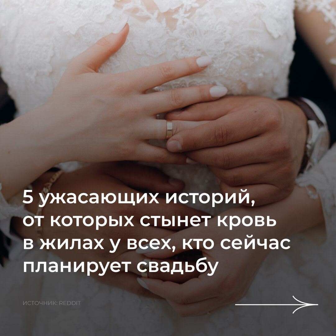 Белоснежные платья с пятнами от рвоты, предательства и драки — оказывается это далеко не полный список того, что случается с влюбленными перед судьбоносной церемонией. В подборке ниже — 5 действительно ужасающих историй, от которых стынет кровь в жилах у всех, кто сейчас планирует свадьбу. Делитесь в комментариях свидетелем каких незабываемых историй вы были на свадьбах👇
