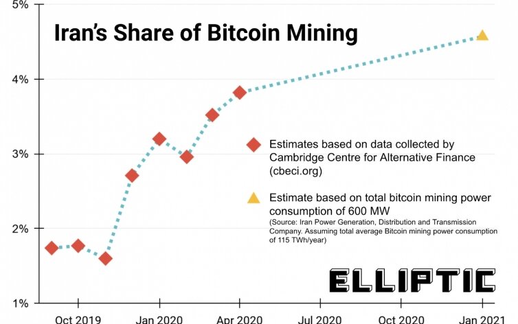 Популярный сервис «Elliptic» опубликовал информацию о я̶д̶е̶р̶н̶о̶й̶ майнинговой программе Ирана. Для обхода американских санкций на продажу нефти, Иран использует энергетические ресурсы внутри страны, добывая BTC через майнинг. По оценке Elliptic, около 4.5% майнинговых мощностей сети находятся в Иране, а доход страны от майнинга превышает миллиард долларов. Ранее Венесуэла пробовала использовать криптовалюты для обхода санкций и восстановления экономики. Иран оказался в схожем экономическом кризисе вызванном санкциями на продажу нефти. После того как экспорт снизился на 70%, экономика страны оказалась в глубокой рецессии. Неожиданное технологическое решение пришло в Иран не случайно. Страна богата энергоресурсами, а также имеет собственную атомную электростанцию. Еще в 2019 году Иран легализовал майнинг при условии раскрытия информации о владельцах ферм. Они вынуждены платить повышенный налог на электричество, при этом он остается достаточно низким для того, чтобы сделать бизнес прив