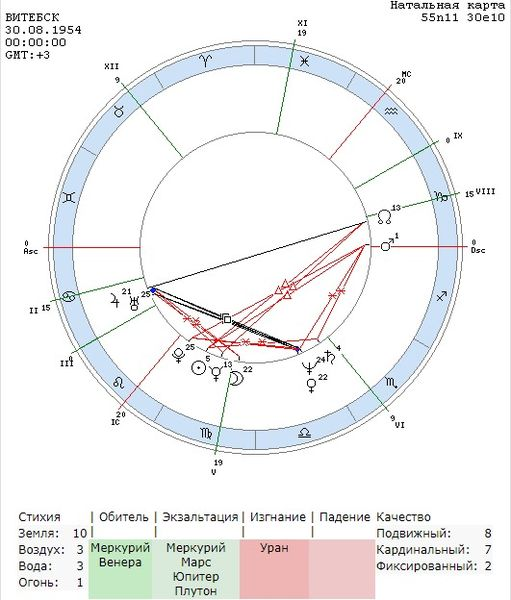 Пришло таки время показать натальную карту царя по рождению. Знакомьтесь, Александр Григорьевич Лукашенко. Родился 30 августа 1954 года в Витебской области.