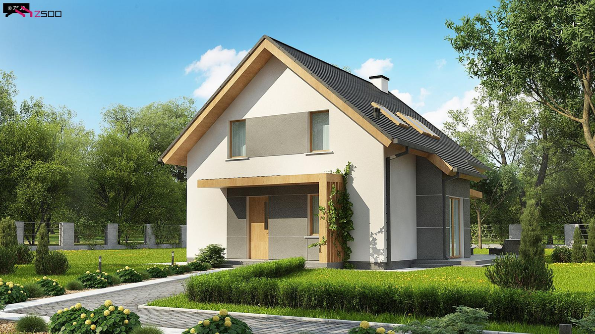 Z44 A Вариант проекта z44 - аккуратный домик с двускатной кровлей и эркером.