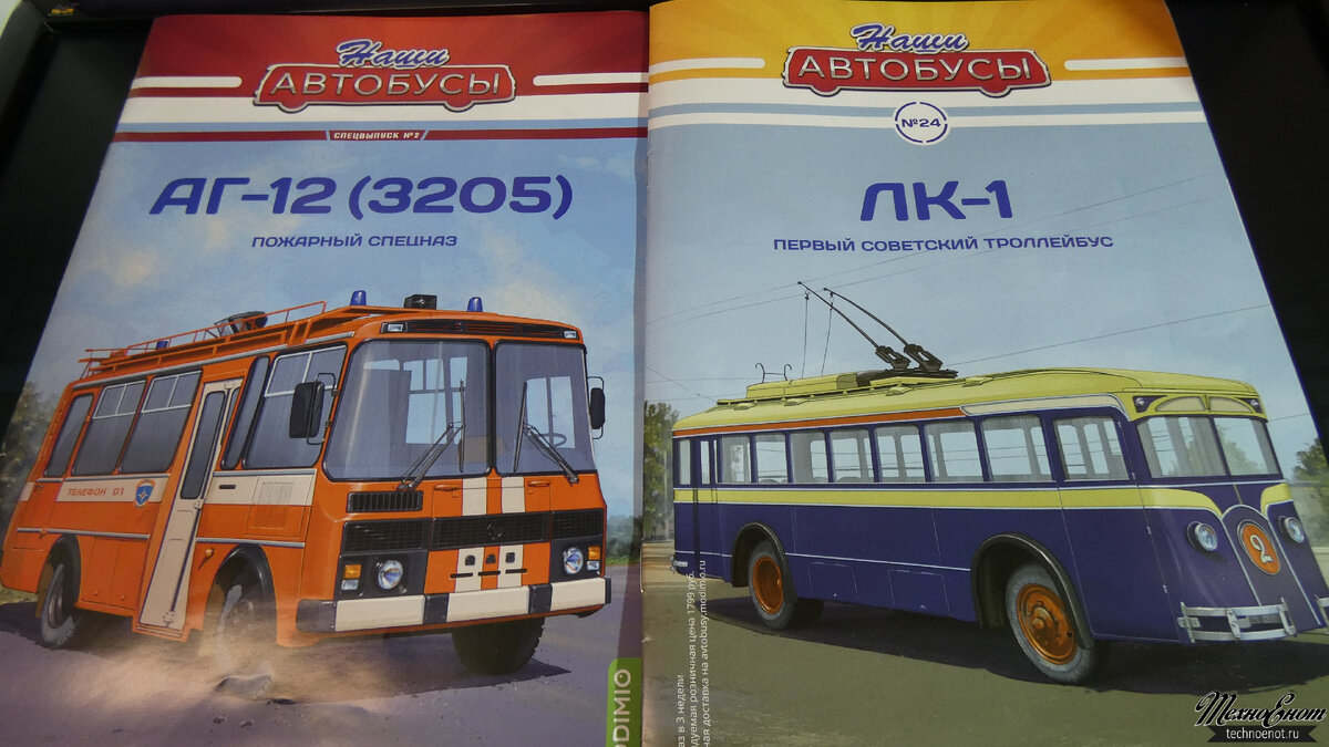 Взглянем на последние модели от Modimio, троллейбус ЛК-1 и автобус ПАЗ АГ-12 (3205) из специального выпуска журнальной серии "Наши автобусы". Кто-то коллекционирует масштабные модели для эстетического удовольствия, кто-то рассматривает это увлекательное хобби как инвестиционную составляющую и собирая редкие модели, выпущенные небольшими тиражами, надеется подзаработать на этом в будущем. И действительно, грамотно собранная коллекция со временем только дорожает. Но в этом весьма затратном, с денежной точки зрения, увлечении есть и ещё один большой плюс. Собирая свой миниатюрный гараж, мы узнаем что-то новое, познаем историю отечественного и не только автомобилестроения и историю своего Отечества. Каюсь, до этого времени я не знал (или подзабыл) о том, что первым советским троллейбусом был ЛК-1, он же «Лазарь Каганович-1». И получив машину в очередном выпуске журнальной серии «Наши автобусы» от Modimio познал и этот факт нашей богатой истории. Да, в этой журнальной серии выходят не тольк