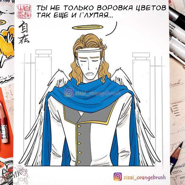 Забавные комиксы об отношениях Небесного генерала и Кумихо: хитрые ангелы