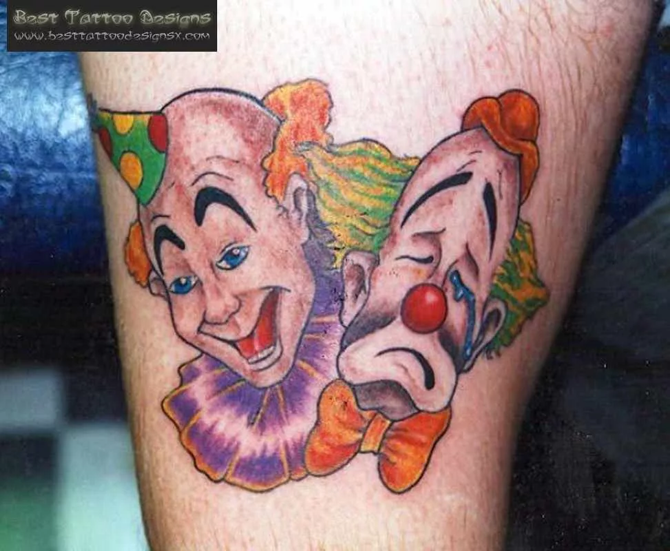 1.Клоун Татуировка клоун имеет двоякое значение. С одной стороны, шут всех смешит, а значит и сам он весельчак и балагур. А с другой – с древних времен люди смеются не только над шикарными шутками, но и над явным уродством людей, их болью и страхами. Эскиз татуировки с изображением шута может быть как черно-белым, так и цветным, от этого явное изящество картинки не страдает 2.Русалка Мрачное изображение указывает на потерю любимого. Данный рисунок означает постоянный траур и одиночество. 3. 3 точки на руке Тату из 3 точек означает участие в банде либо участие в какой-либо преступной группе. 4.Кольца на пальцах Тату представляет собой изображение обручального кольца на безымянном пальце, чаще всего это выглядит как обычная линия. Она также символизирует преданность, но не значит, что человек, у которого она есть, связан с кем-то узами брака. Как правило, с помощью тату мужчина подчеркивает свою верность женщине, которая ждет его на свободе. 5.Хищник с оскалом Значение оскала в тату р