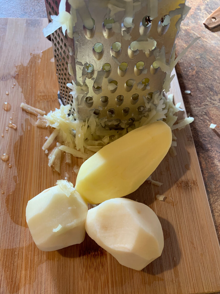 Картошка!) это второй хлеб для русского человека! Но иногда она надоедает( В такие моменты я вспоминаю о том, что в мире существуют ДРАНИКИ!) Я перепробовала много рецептов. И с мукой. И с яйцом. И с луком. И с чесноком. И моим фаворитом стал вот такой рецепт: 2-3 картофелины натираем на крупной терке. Я никогда не готовлю много. Драники по определению должны быть поджаристыми и хрустящими) поэтому есть их надо здесь и сейчас! Вот столько у меня получилось из 4 средних клубней. Дальше перекладываем все в емкость и заливаем холодной водой. Картошку нужно хорошенько отмыть от крахмала. Иначе не успеете вы пожарить драники - а они уже потемнели! В воде нужно подержать минут 10. Сменить воду и снова все хорошо помыть. А дальше сливаем все на сито и хорошенько отжимаем. Нам не нужна ни вода ни картофельный сок. Я добавляю Вкусную соль и немного сушёного чеснока. Ну а дальше дело техники) жарим наши драники на среднем огне до красивой корочки. Выкладывать на сковороду можно прям ру