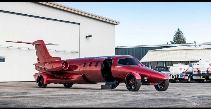 Лимузин-самолет Бизнесджет Learjet превратили в люксовый лимузин. Его оснастили 28-дюймовыми колесными дисками и 8,1-литровым восьмицилиндровым мотором GM мощностью 400 лошадиных сил. Вес автомобиля составляет около 5 тонн. Необычное транспортное средство вмещает 18 пассажиров при снаряженной массе около 5 тонн. Попасть в лимузин можно с помощью специального трапа. В салоне установлены кожаные диваны, огромный дисплей и 17-киловаттная премиальная аудиосистема. Лимузин построен в единственном экземпляре и на нем можно передвигаться по дорогам общего пользования.