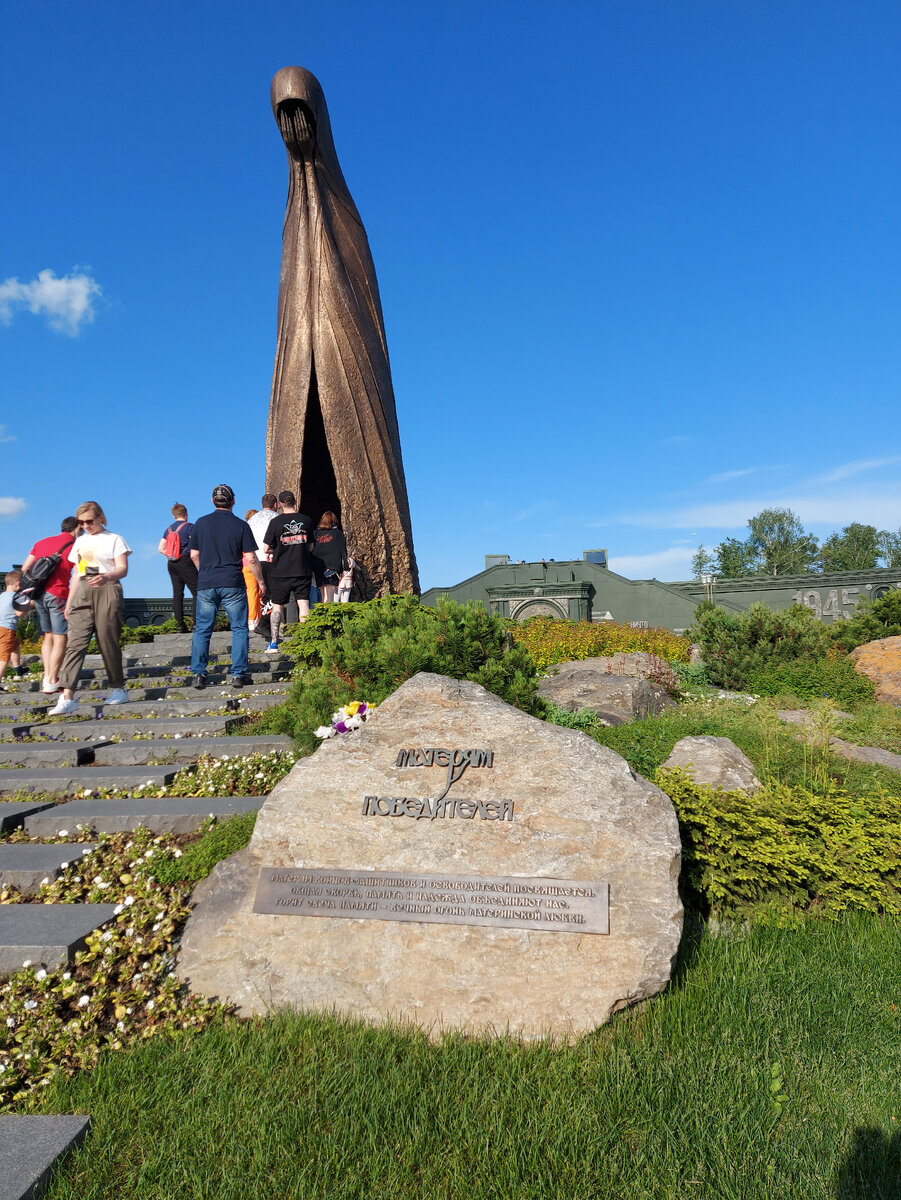 13 июня ездили в парк Патриот. Была отличная погода, дорога тоже была отличная, часть пути проехали по платной дороге- так быстрее. Парковка в парке Патриот огромная, цена вопроса 200 рублей в день. Территория тоже огромная, чтобы всё обойти, в смысле осмотреть, одного дня будет мало. Впрочем, можно и галопом проскакать, но это не интересно. Мы побывали только в музее 1418 шагов, после музея я с одним из своих хулиганов пошёл на "поле боя", там как-бы застыл миг окончания боя, подбитая техника, вражеская и наша, траншеи, огневые точки.