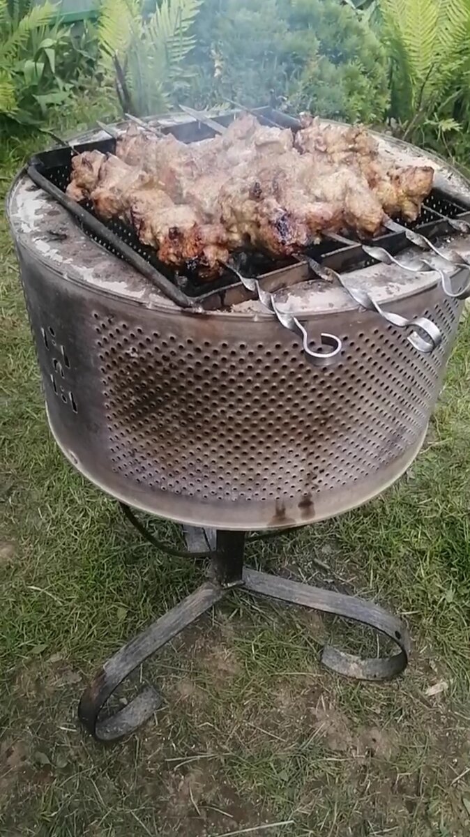 Всем привет! Практически, каждый может изготовить такой мангал сам. При этом все бюджетно и легко. Поэтому такая работа особого труда не составит. Для работы понадобятся следующие инструменты: -болгарка; сварочный аппарат; дрель; набор гаечных ключей. А в качестве корпуса мангала будет использоваться барабан от старой стиральной машины-автомат. Вот что получается! Смотрите ВИДЕО на нашем Ютуб канале 👉👉👉Здесь 👈👈👈 Можно, кстати, сделать дополнительные аксессуары к такому мангал у. Например, приварить крючки под инвентарь, такой как барбекю. Это могут быть щипцы и вилки. А можно придумать и смастерить крышку, чтобы жарить шашлык и в дождливую погоду. Всем здоровья и новых идей!