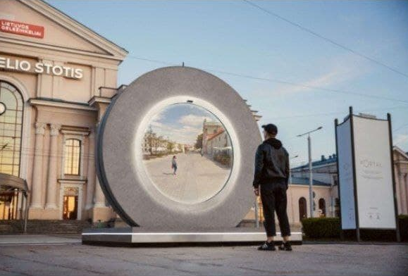 Пока что порталы, через которые можно мгновенно переместиться в другую точку в пространстве, находятся за гранью современной науки. Но с помощью высоких технологий можно хотя бы попробовать сделать что-то внешне похожее на фантастические порталы из известной серии игр Portal. Этим и занялись разработчики Центра творчества и инноваций Вильнюсского технического университета Гедимина: в течение 5 лет они разработали и установили два «видеопортала» в виде футуристической круглой двери, один в Вильнюсе, а другой в 600 километрах, в городе Люблин. Разумеется, вместо портала установлен большой круглый дисплей, а камеры «по ту сторону» транслируют на него изображение в режиме реального времени. Разработчики называют это «цифровым мостом», и они хотят продолжить устанавливать такие порталы по всему миру, тем самым объединяя людей различных культур.