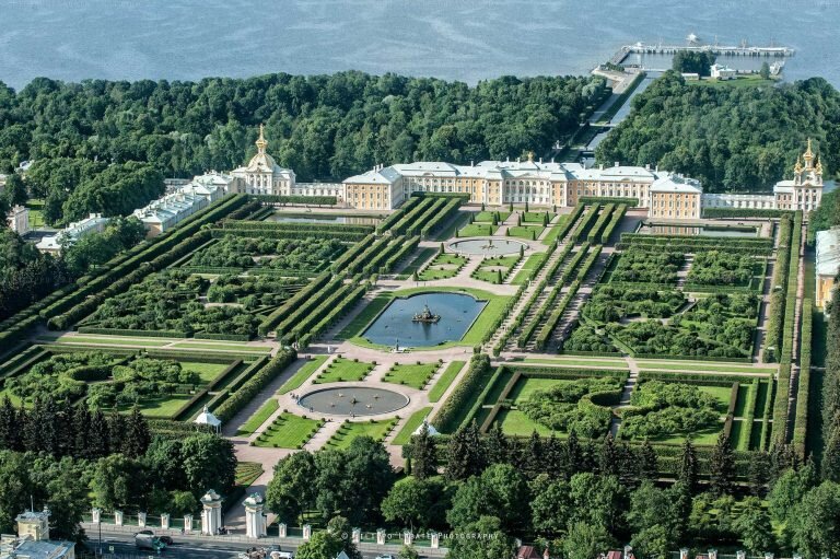 На берегу Финского залива красуется Большой дворец Петергофа. Дворец связывает два парка - Верхний и Нижний. При жизни первого российского императора (Петра Великого) здесь было только невысокое двухэтажное здание под названием Нагорных палат, которое использовалось для проведения праздников и приёмов. Во время царствования Елизаветы Петровны дворец ждал больших перемен. Сохранив первичное обличие Большого дворца Франческо Бартоломео Расстрелли должен был создать ансамбль в виде барокко (тогда елизаветинского). В результате дворец «вырос» на один этаж. Императрица Екатерина Алексеевна во внешний облик дворца внесла простоту и изысканность. Архитектор Андрей Иванович Штакеншнейдер, выполняя приказ императора Николая Павловича, реконструирует восточную часть здания по случаю венчания дочери его Ольги, поэтому эта часть здания стала называться Ольгинской половиной. Великая Отечественная война превратила многие помещения в руины, однако, ценой многолетнего кропотливого труда реставратор