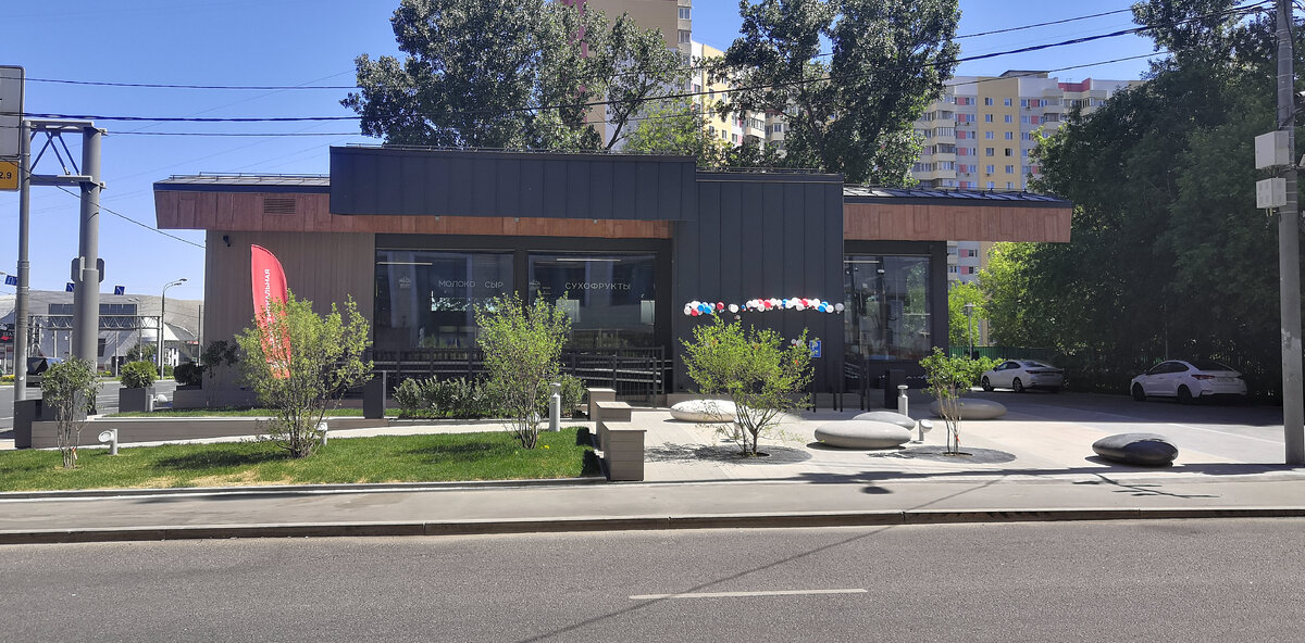 По моему получилось очень красиво и современно, хотя стилизовано по 70-е годы! И шрифт на вывеске очень стильно вышел! Перед входом вместо лавочек большие камни. Выглядит прикольно! И внутри очень современно! Мне нравится что вместо пустыря появилось такое местечко! Отличная работа!