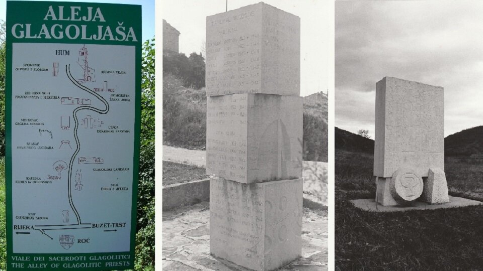 Одна из самых популярных достопримечательностей Хорватии, которая прославляет славянскую азбуку, находится на полуострове Истрия. Она расположена между деревней Роч и самым маленьким городом в мире Хум, в котором проживает около 20 человек. Длина аллеи более 6 км, на ней с двух сторон размещены скульптуры с письменами на глаголице. Построили аллею в 1976 г. по инициативе Чакавского собора и создавалась в течение пяти лет – 1977-1983 гг. На аллее установлены 11 скульптур, которые символизировали этапы развития глаголицы. Первой установлена двухметровая каменная скульптура в виде большой буквы «С», что по церковнославянскому обозначало «Слово», «Рассудок», «Разум». Вторую статую посвятили Кириллу и Мефодию – в виде стола. Ранее со скульптурой росли два кипариса, символизировавших этих святых. У стола три ноги, на нем высечены на глаголице слова «STOL KONSTANTINA KIRILA I METODIJA» Третья статуя посвящена славянскому университету и его создателю Клементу, ученику Кирилла и Мефодия. Под в