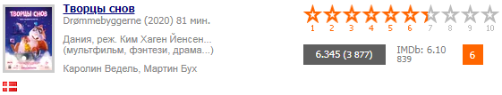 Мультфильм аж из Дании. Создатели явно вдохновлялись "Корпорацией монстров" и "Головоломкой" , а это очень хорошие примеры для подражания. Разница в том, что действие происходит не в реальности и не в голове главной героини, а в ее снах. А так все очень похоже - волшебные человечки, которые тайно что-то делают за гранью воображения, и подростковые проблемы, с которыми проще разобраться где угодно, но только не в реальном мире. Также, следую заповедям современного Диснея, датские творцы не бояться поднимать градус и говорить о серьезном - разводах и семейных распрях. Но история все равно получилась детской и душевной - настроение можно ощутить уже после заглавной маминой колыбельной.