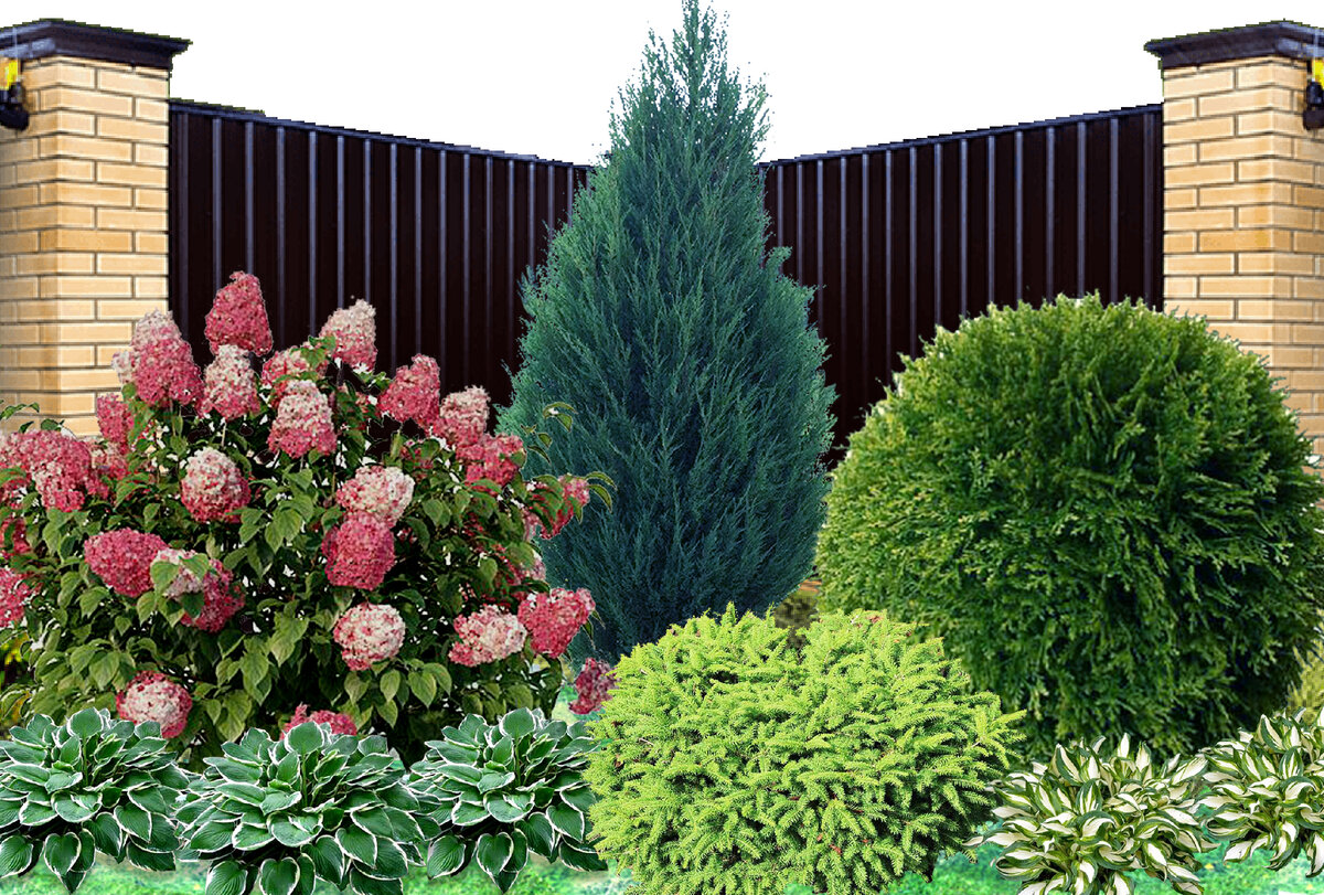 Что посадить в угол у забора, какие растения выбрать для этого и чтобы это все было красиво и гармонично - всегда извечный вопрос. Сегодня предлагаю вашему вниманию новую схему клумбы. Место от забора очень часто бывает в тени, сам забор дает тень. Сегодняшний проект подойдет как для полутенистых уголков, так и для солнечных мест. Сочетание растений довольно простое, с посадкой такой клумбы справиться даже новичок. Кроме того, эта клумба скроет часть забора и добавит ярких красок. Давайте перейдем к подробному составу схемы: 1. Можжевельник скальный Скайрокет В центре композиции предлагаю разместить можжевельник Скайрокет. Благодаря своей красивой конусовидной форме прекрасно впишется в самый угол забора. Обладает интересной окраской хвои - сине-зеленой. Растет этот сорт не быстро, но к 20 годам может вырастать до 6 метров. 2. Гортензия метельчатая Опять не акцентирую внимание на конкретном сорте, т.к. сейчас огромное множество сортов гортензий. Не хочется ограничиваться на чем-то