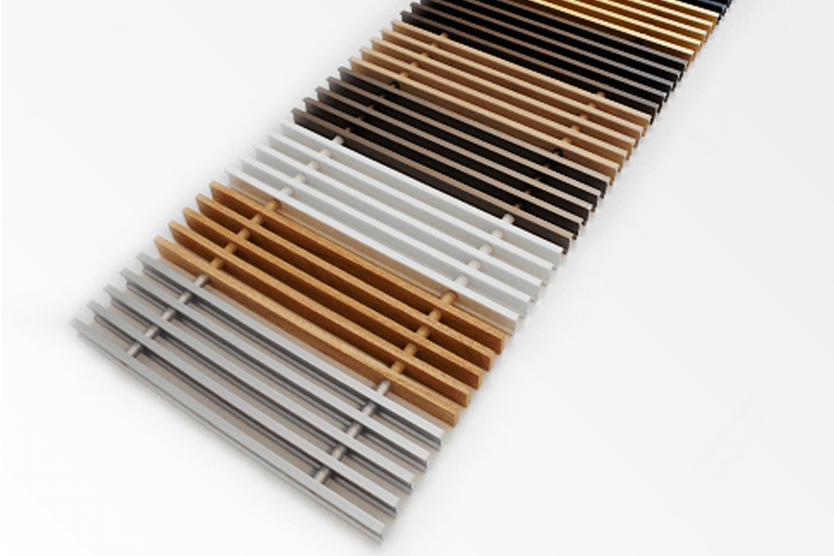 Деревянные решетки могут быть светлыми или темными. В зависимости от производителя изготавливаются из дуба, клена, мербау, бука и других пород. Зачастую они представлены в «родном» цвете или предлагаются в лакированном исполнении.