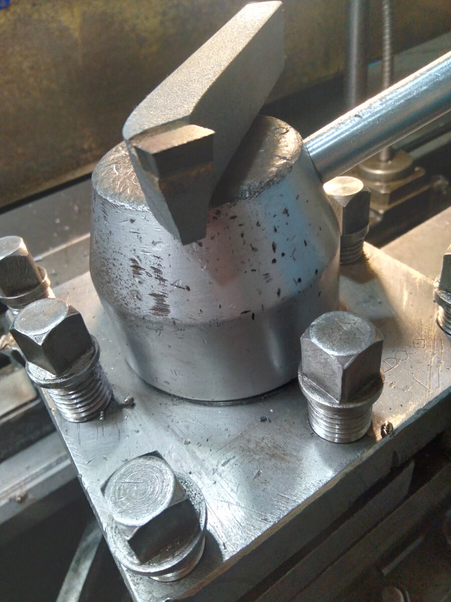 Для наглядного пособия я выбрал токарный резец, проходной отогнутый с напаянной пластиной Т15К6, для получистовой обработки сталей. Берём резец и идём в заточное отделение. Надеваем защитные очки и включаем заточной станок. Проверяем зазор между абразивным кругом и подручником, он должен быть не больше 2-3мм. Точим по очереди поверхности которые будут учавствовать в резании: Потом выключаем этот станок и идём к станку на котором установлена алмазная чашка: На алмазном кругу правим поверхности, начерно обточенные на предыдущем станке. На ребре алмаза делаем в резце стружкоотводящую канавку. Притупляем все кромки резца радиусными фасками. Всё, инструмент готов к работе: