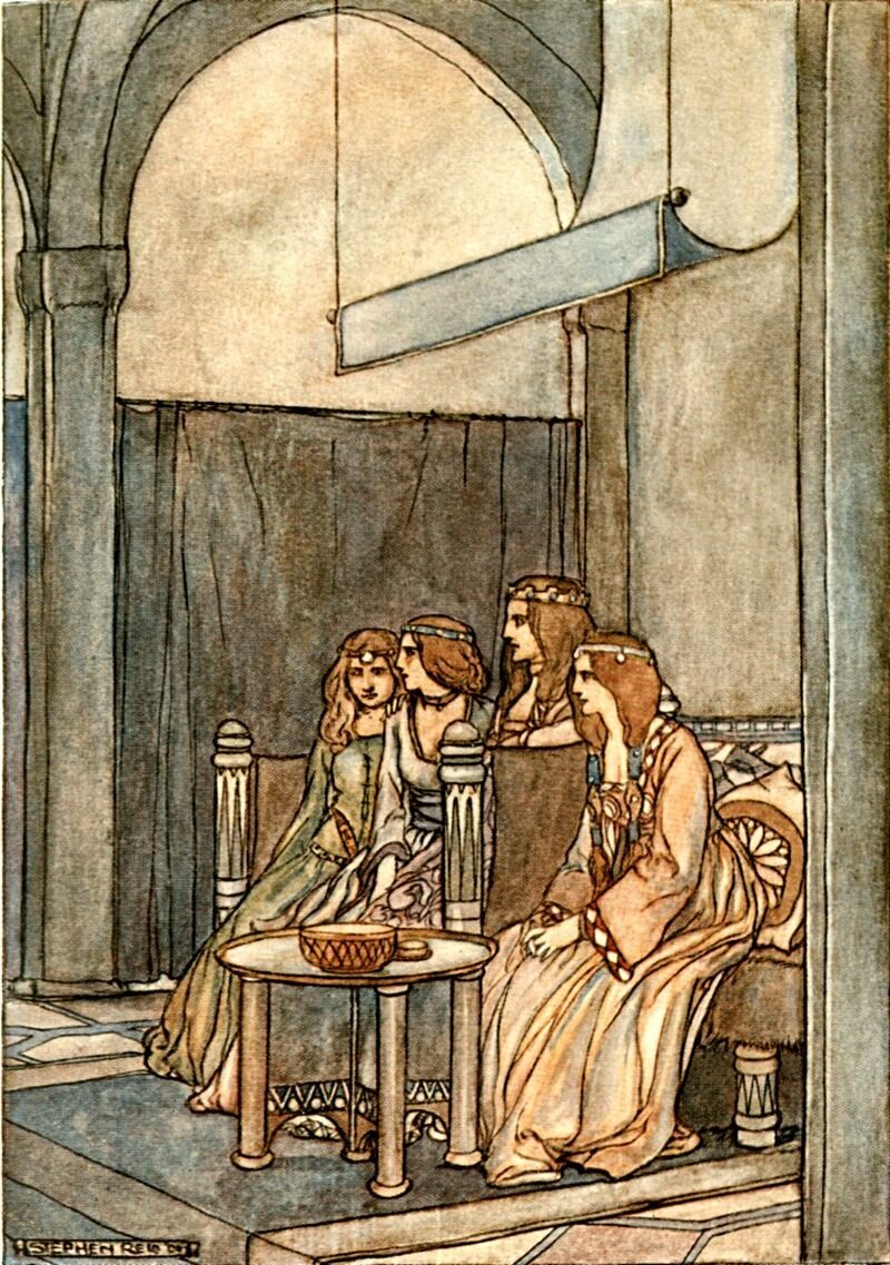 - С семи лет девочке был открыт (и даже стал обязателен!) доступ на пиры, которые давал феодальный сюзерен ее отца. На них обязательно следовало прибыть в праздничном платье, почтительно поздороваться с хозяином и хозяйкой, выслушать пару дежурных любезностей и отправиться на место, за столом, которое им полагалось по рангу.
