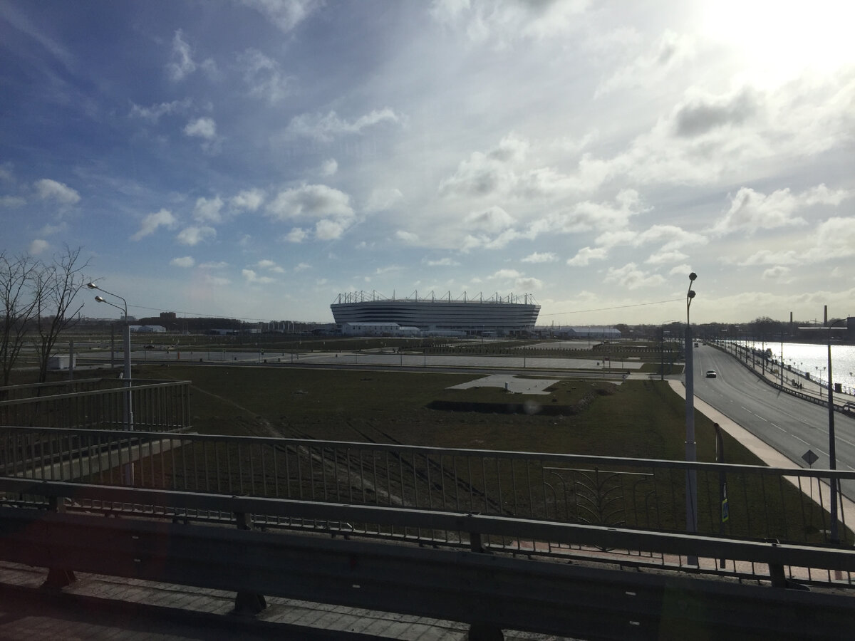 Теперь о минусах. Стадион находится на топком Октябрьском острове (Ломзе) между двумя рукавами Преголи, где не решались строить что-либо даже немцы, передовой народ в строительной отрасли. Это огромное и очень тяжёлое сооружение, и на мой скромный профессиональный взгляд, для него было выбрано не лучшее место. Уже сразу после возведения арены возникли ненормативные осадки грунта, на борьбу с которыми пришлось выделять дополнительные средства при и так огромной стоимости проекта. Тем не менее, надеюсь, со стадионом ничего плохого не случится.