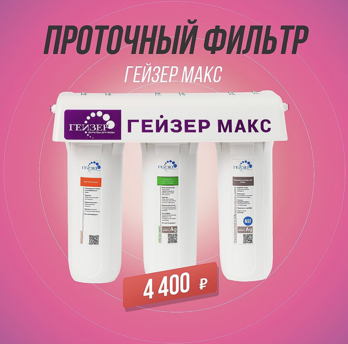 Трехступенчатый фильтр Гейзер Макс 16024 служит для максимального умягчения воды при помощи сочетания свойств специальной ионообменной смолы в картриджах AquaSoft и Арагона МАКС. Фильтр прост в установке, выполнен из непрозрачного пищевого пластика. Изделие с тремя ступенями очистки очищает воду от ✔️ железа - 92%, ✔️хлора – 99,9%, ✔️ меди – 97%, ✔️ цветности, запахов и привкусов – 100%. Преимущества Гейзер Макс трехступенчатый: 💧Максимальный ресурс по умягчению благодаря сочетанию свойств специальной ионообменной смолы AquaSoft и Арагона МАКС; 💧Максимальная чистота* эффективность очистки по железу 92%; хлору – 99,9%, меди – 97%, цветности, запахам и привкусам – 100%; 💧Максимальная польза устраняя избыточное количество карбоната кальция ГЕЙЗЕР МАКС сохраняет полезный минеральный состав воды; 💧Максимальный комфорт компактный, удобный и легкий в установке и работе фильтр для умягчения воды – занимает не более 10% места под стандартной мойкой на кухне. Один поворот ручки к