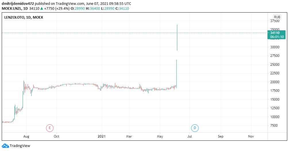 Добрый день. На российском фондовом рынке пошел очередной сюрприз. Взлетели на сегодня акции компании «Лензолото» на момент написания обзора на 30%, всего лишь за один день. Поскольку многие обсуждают это событие и мне пишут в личку, то я обязан разобрать эту компанию и рассказать свое мнение о ней. Акции Лензолото: Вот собственно сам график акций этой компании. Опытные читатели уверен и сами все понимают, а вот новичкам придется разложить всю картину, чтобы потом не лились зря слезы. Что не так с акциями Лензолото и почему я считаю заходить в эту компанию – опасной идеей? Обо всем по порядку и начнем с фундаментального фактора, которое притянули за уши, чтобы оправдать рост цен. Решение о дивидендах, как причина стремительного роста? А так бывает? Основной причиной выдвигают решение совета директоров направить всю полученную прибыль от продажи дочерней компании. Мотив впринципе понятен. Все деньги от продажи дочерней компании выдадут акционерам ввиде прибыли, но здесь не сходится друг
