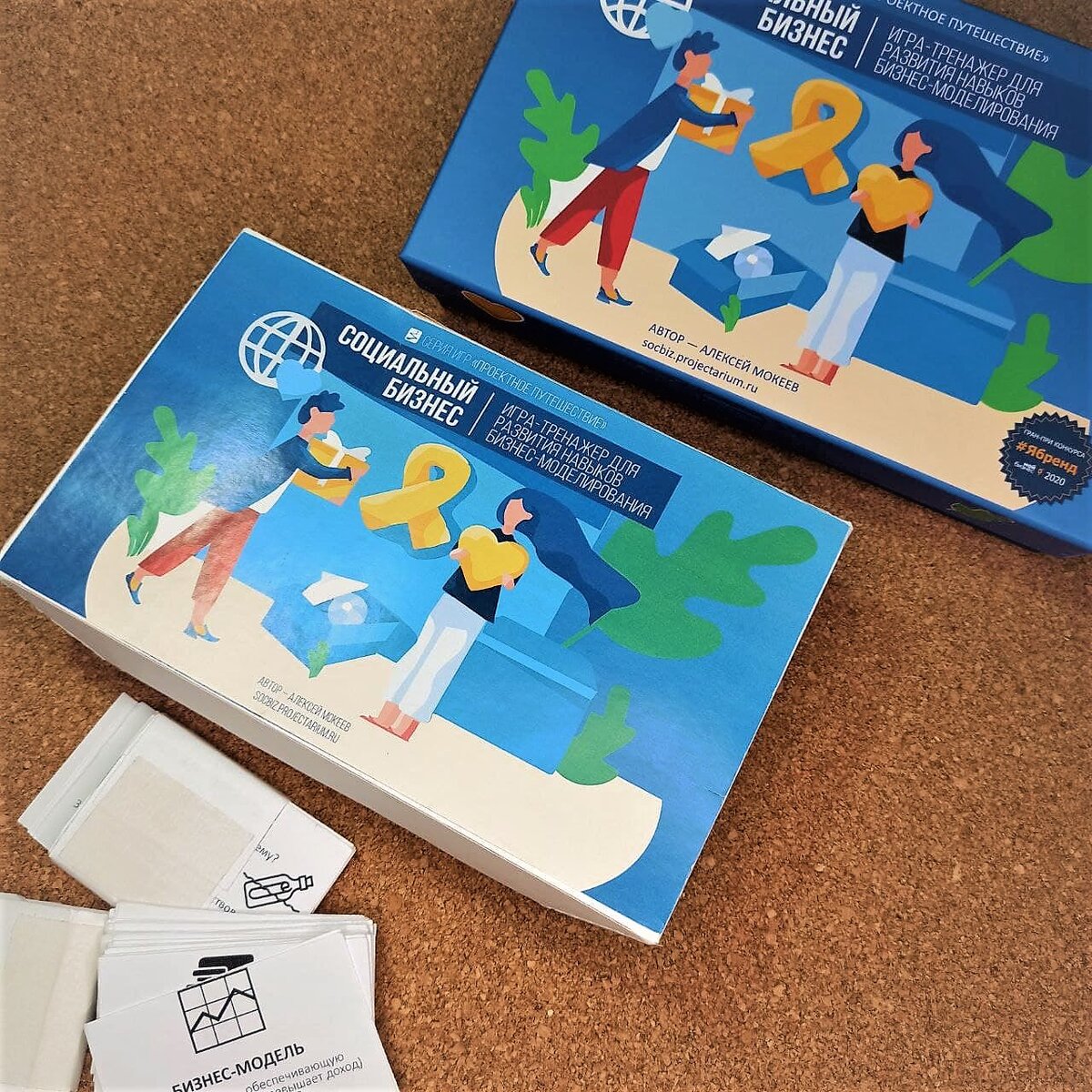 Сразу отмечу, что подобный путь тестирования продукта с помощью MVP я уже проходил с игрой «Проектное Путешествие» и приведенное выше описание в больше степени относится именно к этой игре. Однако у меня не сохранилось ни одной коробки игры «Проектное Путешествие» в ранних версиях, поэтому для наглядности я показываю коробки игры "Социальный бизнес". Зная ответы на большинство вопросов, приведенных в списке выше, я сразу подготовил её к продаже в том виде, как на следующем фото.