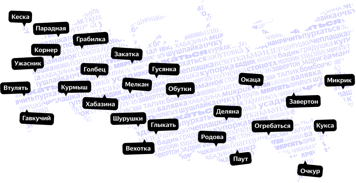 Ко Дню русского языка мы изучили статьи и комментарии на Яндекс.Дзене и нашли слова, которые используются только в некоторых частях страны. Например, такие. Оказывается, в Курской и Ульяновской областях фильм ужасов могут назвать ужасником. Говоря про мелкие предметы, вещички, в Новосибирской области могут сказать шурушки. Слово глыкать могут использовать вместо слова пить в Кемеровской области. Овода во многих регионах России называют паутом. А корнером в Москве называют отдельный павильон или стенд в большом магазине. Вот ещё несколько примеров: Увидеть больше слов из разных регионов, а также пройти тест на знание регионализмов можно на странице исследования.