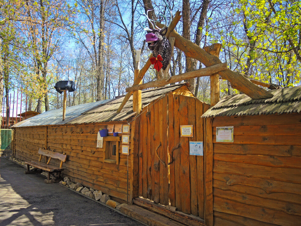 В Самаре в посёлке Управленческий есть очень интересный развлекательный комплекс «Сказка». Он включает в себя столовую, кафе-кулинарию, ресторан и парк. А также здесь есть небольшой зоопарк, который на страничке в ВК называется живым уголком. Мне кажется, организаторы немного скромничают. Живой уголок - это пара клеток в углу актового зала или коридора. Здесь же оборудован настоящий зоопарк. Осенью прошлого года я случайно подсмотрел за его обитателями через забор. В этом году решил зайти внутрь и посмотреть всё подробнее. Первую часть рассказа о посещении зоопарка и предлагаю посмотреть. Фотографии в галереях, не забывайте их листать. Под зоопарк отведена часть парка, она огорожена деревянной стенкой. По информации со странички, живой уголок работает без выходных. Билет стоит 200 рублей для взрослого, 150 для ребёнка. Можно также купить еду для животных и покормить их. Фотосъёмка платная только с профессиональной аппаратурой. Как именно её тут определяют, я не знаю. Но с меня за мой ф