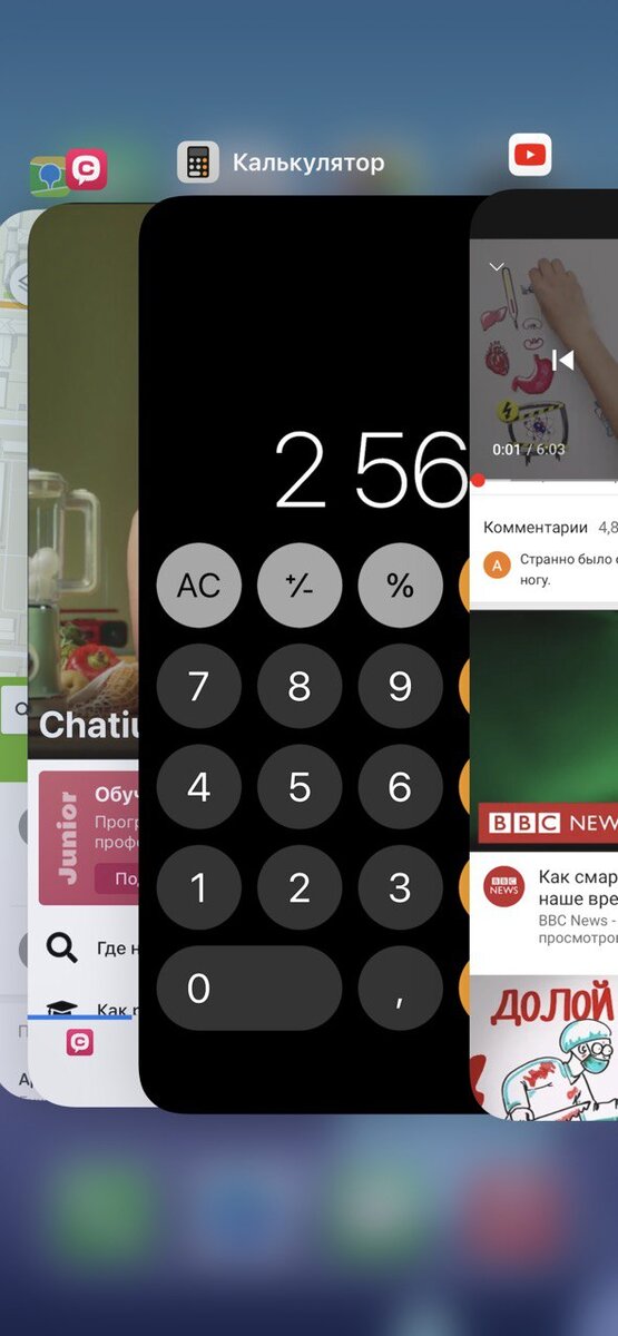 Если приложение “глючит” и странно себя ведёт, вот как это можно остановить Даже с приложениями для iOS могут возникнуть проблемы - они могут вылетать, зависать или просто перестать работать. Если вы новичок в iOS или просто не сталкивались с этим раньше, то возможно, вы не знаете, как на самом деле выйти из приложения (кроме как просто смахнуть его с экрана). Вот как закрыть приложение на iOS 14: Откройте Переключатель программ (App Switcher), смахнув пальцем вверх от нижней части экрана к его середине и удерживайте касание, пока не отобразится программа, либо (если у вас есть кнопка «Домой») дважды нажмите кнопку «Домой». Вы увидите все открытые вами ранее приложения. Проводите пальцем вправо или влево, пока не найдете приложение, из которого хотите выйти. Проведите пальцем вверх по приложению. К сожалению, не все у iOS проработано и закрыть все приложения разом не получится. Другими словами, если вы захотите это сделать, то вам придется просто смахивать каждое приложение по одному.