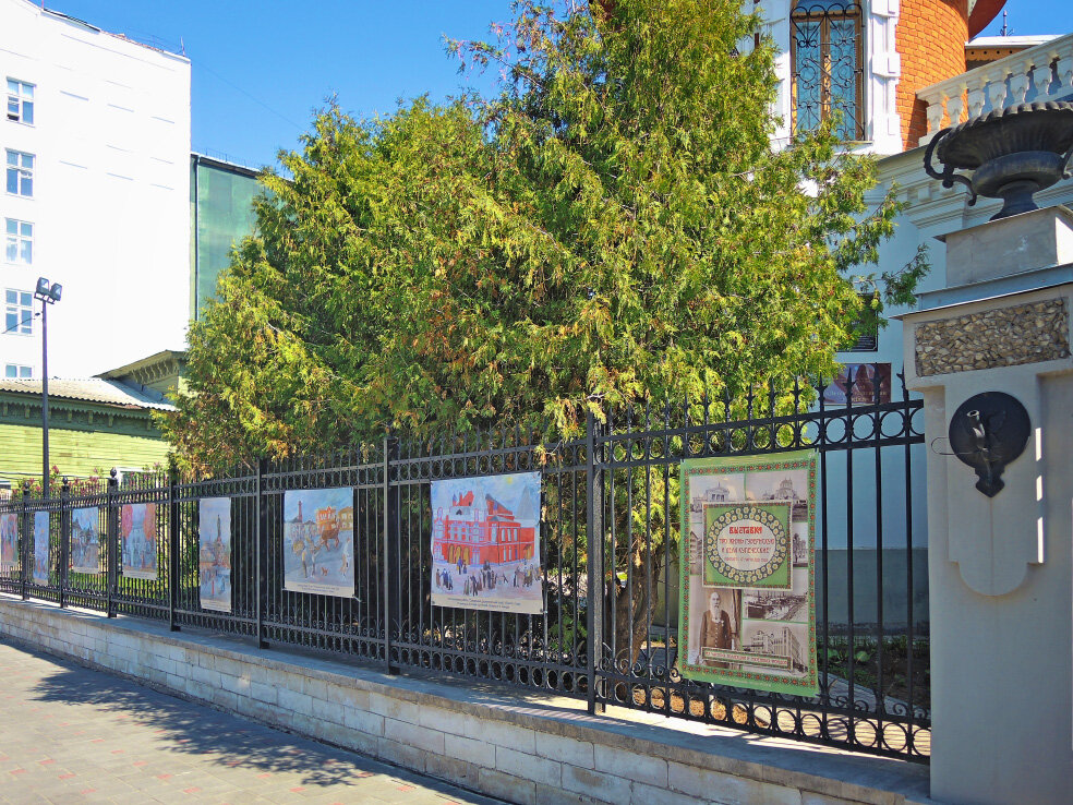 В Самаре становится традицией украшать улицы города детскими рисунками. Большую подборку, посвящённую Дню города я уже показывал. Сейчас, кстати, на этом месте уже что-то другое. Нужно будет сходить проверить, что именно. А пока покажу другой забор - около особняка Клодта. Здесь находится музей Детская картинная галерея, на базе которой и проходят различные конкурсы рисунков. Сейчас на ограде смонитрована небольшая выставка из репродукций рисунков на тему истории Самары. Работ совсем немного. Но мне они показались интересными. Один из архитектурных символов города - здание драматического театра. Здесь, вероятно, изображён район Хлебной площади. Именно здесь находилась пожарная часть. На заднем плане видна каланча. Нынешняя площадь Революции. Сейчас здесь стоит памятник Ленину. До революции на этом же постаменте находился памятник Александру II. Здесь в названии небольшая неточность. Это здание - не дом фон Вакано, в котором он жил. Это здание, в котором располагались пивная лавка и рес