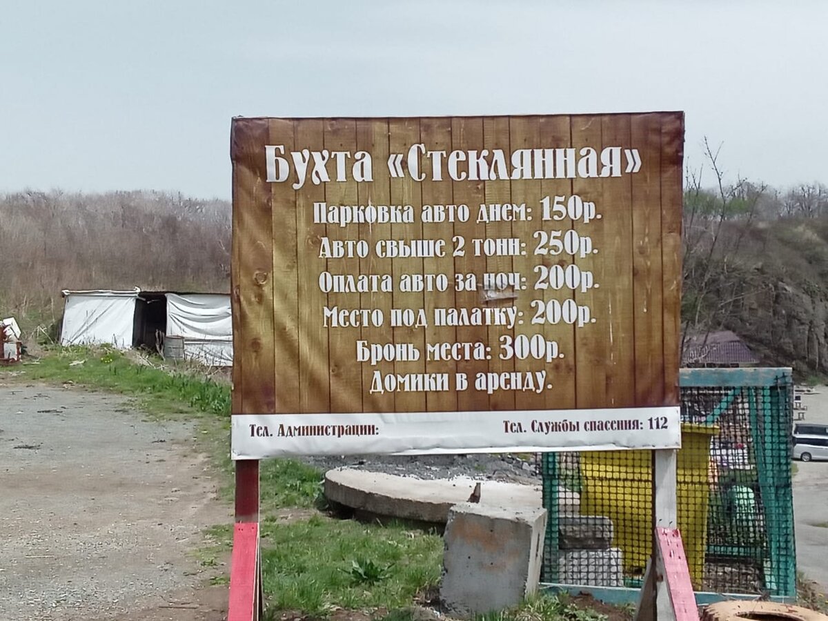 Еще одна бухта Уссурийского залива бухта Стеклянная или Стеклянуха как любовно называют ее местные жители. Каждый называет как хочет и как кому нравится. Притягательное место для отдыха горожан и гостей города, опять же это несмотря на близость бывшего полигона ТБО. Туристы очень любят собирать на сувениры стеклышки обточенные морем, а гиды рассказывают легенды о самосвалах вывалившихся в бухту тонны бракованного стекла. Расценки на отдых на пляже как и на других пляжах Уссурийского залива. Парковка днем 150 руб 200 ночью, место под палатку 200 руб, все как везде. Простенько и без затей, несите деньги в кассу и радуйтесь жизни! Спуск к морю это грунтовая дорога, хотя если посчитать количество въезжающих машин и поборы с них, давно можно было бы и асфальт положить, но нет, опять жаба душит. Мусорный контейнер, при въезде, как чадрой занавесила металлической сеткой и слегка окрашен, чего нельзя сказать о его собратьях стоящих на пляже. Видимо только на его одного и хватило краски (ар