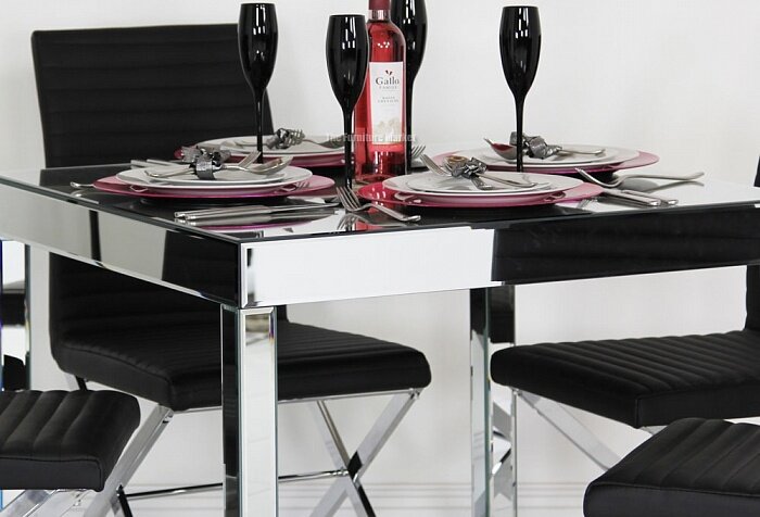 Даже если на вашей кухне единственным представителем зазеркалья будет столешница обеденного стола, интерьер уже заиграет по-другому. Усилить эффект зеркальной столешницы поможет персональный источник света, расположенный непосредственно над столом, букет цветов в изящной вазе или элегантная сервировка с использованием стеклянной или цветной посуды.