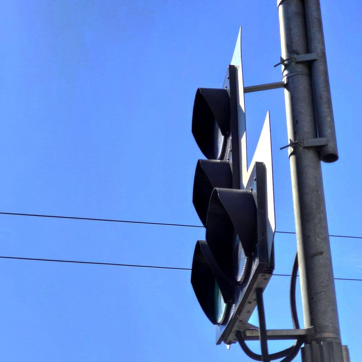 Однако почему-то на улицах я вижу светофоры с такими короткими кепочками, что на солнце совсем невозможно разглядеть, какой сигнал светофора горит.