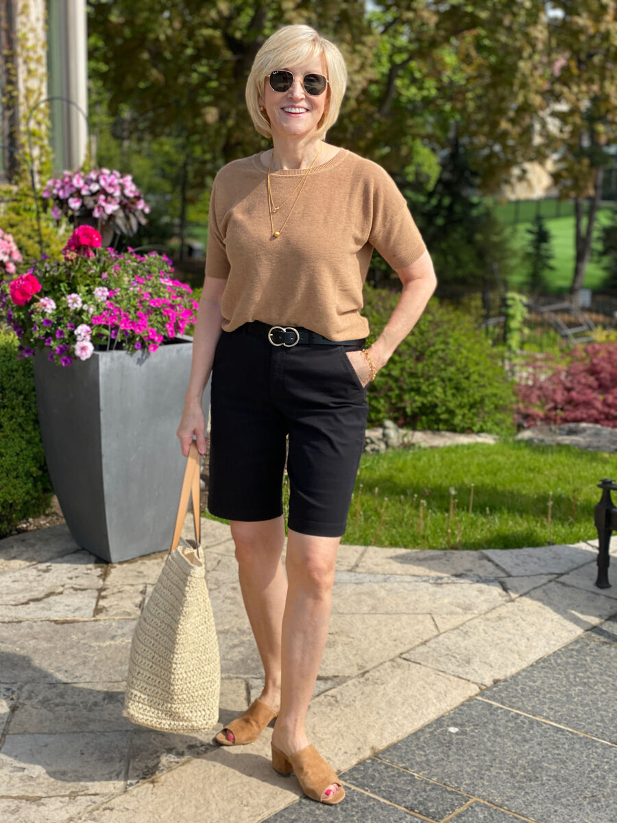 3 шикарных способа для дам 50+ стилизовать черные шорты-бермуды, о которых вы, возможно, не задумывались