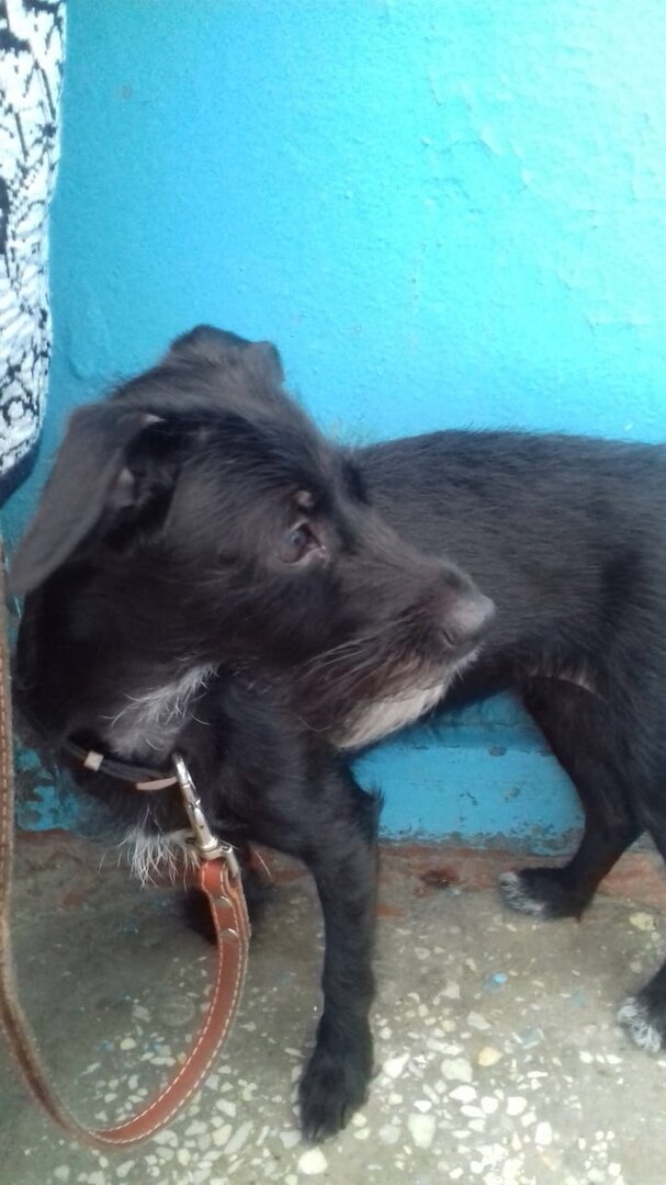 На днях на стене нашей группы ВК появился первый пост об этом щенке. В каждом городе есть разные дома, не хотим обидеть жителей ни одного из них, но есть такие, где находиться очень страшно, по причине постоянного шума, грязи и неадекватных сидящих на лестничных пролетах людей. Их посиделки сопровождаются громкими криками, харчками и периодически возникающими конфликтами. В таком месте опасно оказаться даже взрослому человеку, что уж говорить о щенке. Утром, 4 июня, волонтеру поступил звонок, что именно в таком подъезде, уже с ночи, сидит щенок. На нем ошейник и поводок, никуда не привязанный. Собакен, на самом деле, небольшой, сидел тихонько поскуливая и постоянно озираясь по сторонам. Без переводчика, с собачьего языка, было понятно, что он очень напуган. Благо техничка, убирающая этот подъезд, очень добрая женщина и она сразу позвонила волонтерам и забила тревогу. Тут же, Эльза (так зовут эту добрую женщину) пообщавшись с жителями на этом этаже, договорилась о передержке щенку. Но