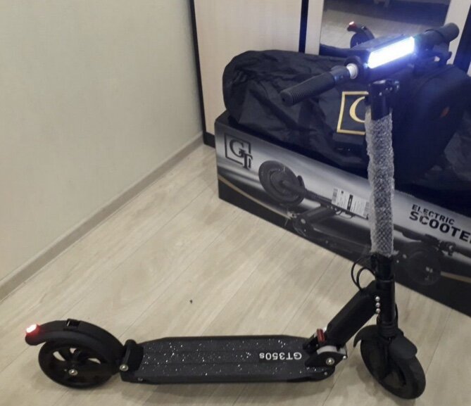 Всем привет дорогие друзья. Сегодня хочу поговорить с вами о необычном и более усовершенствованном электросамокате GT350S. Для начала начнём с технических характеристик электросамоката. Аккумулятор : до 8800 мАн 36v Тип батареи: литий-ионная Угол подъема: 15 градусов Пробег на одном заряде: до 30 км Диаметр колеса: 8 дюймов Максимальная нагрузка:120 кг Максимальная скорость: до 30км/ч Мощность мотора:350W Тормоза: дюймовые, рекуперация классический крылом Время заряда батареи : от 3 до 4 часа Вес:11 кг Габариты: 1160 х 940 х 210 мм Цена:14 500 рублей Данная модель GT 350S идёт без сиденья , но это не совсем критично. Хочу сразу отметить, что у электросамоката данной модели есть очень много схожих черт с kuggo S3. Давайте же рассмотрим внешний вид электросамоката GT350S и его конструкцию. На экране бортового компьютера на данной модели собираеться основная информация, скорость заряд батареи. Панель хорошо защина, на ней не скапливается влага и очень удобные кнопки управления, это о