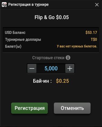 Надоело играть в холдем или омаху? Покер-румы уже не первый год ведут разработки новых форматов, которые бы внесли необычную лепту в привычные всем игры. Некоторые проекты не привлекают внимание игроков, другие же прочно остаются в игровых клиентах и пользуются большой популярностью. Рассказываем о необычных форматах, которые меняют представление о покере. Flip&Go (GGпокерок) В начале января на GGпокерок появились Flip&Go - турниры, где уже спустя пять минут вы можете попасть в деньги, а на префлопе сначала раздают по три карты вместо двух. Первое нововведение появляется во время оплаты бай-ина: вместо обычных ребаев и адд-онов вы сразу можете внести несколько взносов и получить увеличенный стек. Например, в турнире за $0.05 дается стартовый стек 1,000 фишек, можно заплатить $0.25 и получить 5,000 фишек. Сам турнир состоит из двух стадий. Сначала игроки оказываются за 8-макс столом и автоматически идут олл-ин каждую раздачу. Перед олл-ином всем раздается по три карты вместо двух, при