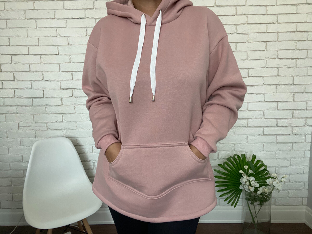 Простая выкройка, без сложных формул и подсчетов, которую сможет построить каждая девушка. Универсальный размер 42-50. Данная выкройка подойдёт любой девушке/женщине с размером груди до 100 см и размером бёдер до 118 см. На стройных будет смотреться как оверсайз, а на девушках с формами будет также отлично сидеть. Данная модель будет со спущенным рукавом, карманом кенгуру и капюшоном. Длина худи 72 см. Вы можете сделать короче или длиньше, по желанию. Можете разместить карман повыше, а по низу сделать кашкорсе по типу манжет на рукавах.