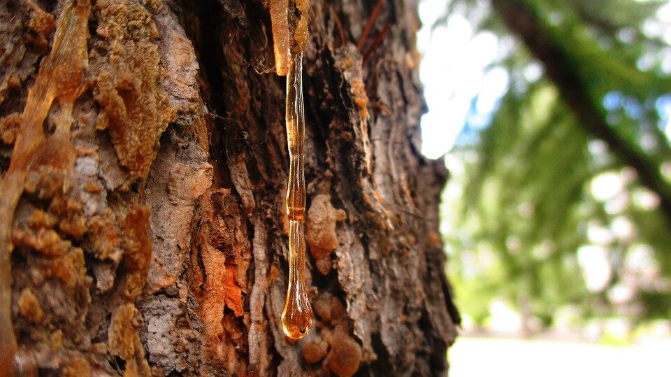 Вытекает из сосен смола.