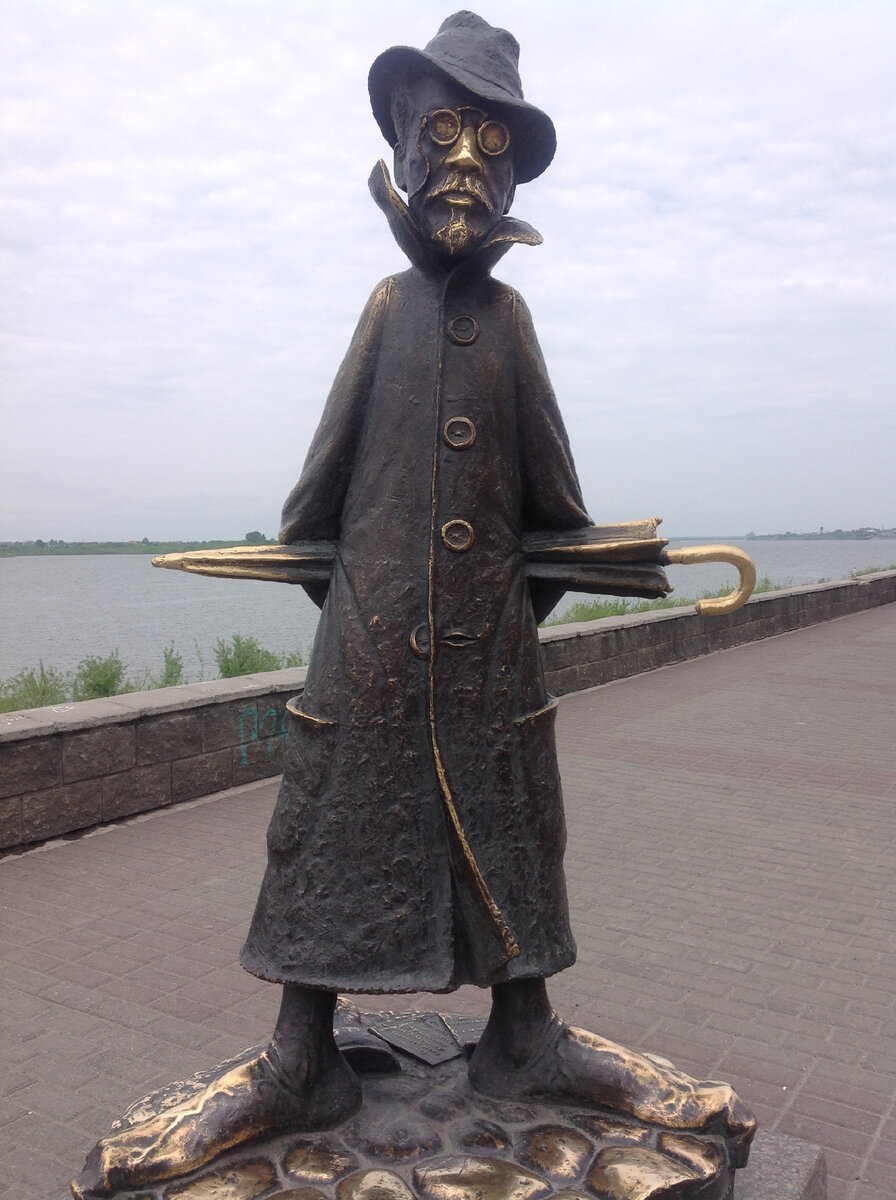 Приветствую всех на своём канале ! Сегодня - продолжение статей о Томске ! Стоит только несколько дней не публиковаться и все : уходят и аудитория и подписчики даже . Грустно . Сегодня я хочу показать , сколько интересного можно увидеть , если только прогуляться по центральной улице Томска . ЧеХов Антон Павлович в Томске бывал и остался весьма городом недоволен , о чем и написал в своих дневниках . Но томичи - люди незлопамятные и посвятили классику оригинальнейший памятник на набережной . Ну своеобразный немножко ... В 2004 году Леонтием Усовым была создана вот эта бронзовая скульптура . Она даже имеет название " Чехов глазами пЬяного мужика , валяющегося в канаве и не читавшего Каштанку " Антон Палыч был в Томске в 1890 году , проездом на Сахалин. Классику не повезло : был сильный дождь , писатель промок и заболел . Также он отметил множество пьяных в городе , грязь и скуку . Тогда публика была самая разная , ведь в то время в Томске было много ссыльных . Тем не менее , откуша