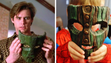Большинство молодых (и старых) детей любят супергероев с самого раннего возраста. Но для одного маленького мальчика его отец поднял это на совершенно новый уровень, когда попросил маску из фильма "Маска". как он сделал почти идеальное совпадение с этой знаменитой маской. Вот оригинальная маска, которую носил Джим Керри в фильме "Маска". Папа начал работать над ним, купив модель Crayola Magic Foam и быстро вылепил из нее маску. Затем он использовал нож для масла, чтобы получить линии. Он положил его на голову манекена, чтобы придать ей форму головы. Потом он дал ему высохнуть пару дней. Готовый к покраске, он просто использовал акриловую краску, которая была у него по всему дому. Поскольку пенопласт все равно будет немного хлюпким, на него нужно нанести пару слоев твердого прозрачного покрытия. Первый слой краски был черным, чтобы заполнить тени в трещинах. Затем он насухо смахнул коричневый. Потом зеленая с золотом краска. Конечный результат: один счастливый ребенок, который может пре