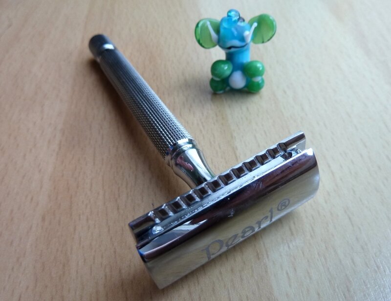Как указано в описании агрессивности Т-образных станов, о которой я писал в предыдущих публикациях, агрессивность бритвы «Pearl SS-04 Closed comb» снижена из-за веса ручки, вес которой довольно-таки существенно оказывает влияние на агрессивность бритвенного станка, так что чем больше вес ручки, тем выше агрессивность бритвы.