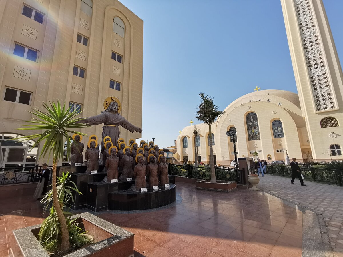 Теперь в Самалуте главная достопримечательность – большой храм, построенный в честь Ливийских мучеников. Храм необычный. Входя на территорию, пройдете через кордон вооруженной охраны (в Египте все христианские храмы охраняются). И перед вашими глазами под сенью Христа откроются фигуры святых новомучеников. Двадцать один человек. Копты в этом мемориале сделали портретную фигуру каждого убиенного.