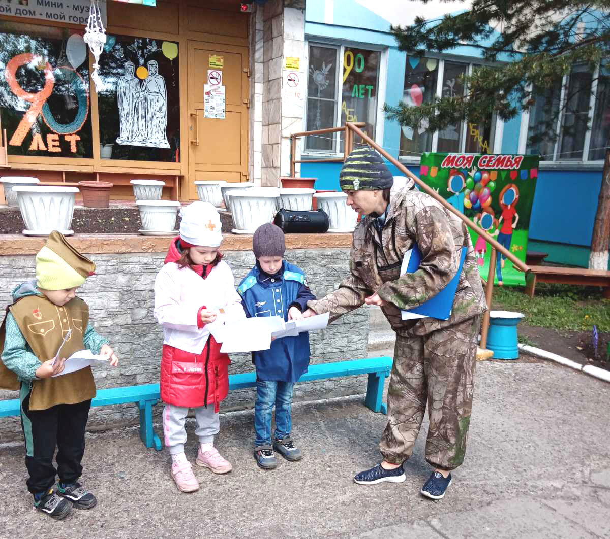 В детском саду «Светлячок» прошла военно-патриотическая игра «Зарница», посвященная Дню пограничника, который традиционно отмечается 28 мая. Дошкольники узнали, что пограничники осуществляют охрану государственной границы по морю и по суше. В их обязанности входит препятствование незаконному пересечению пределов страны, ее оборона в случае нападения, контроль и пропуск граждан, задержание нарушителей, взаимодействие с другими органами власти. Для того, чтобы испытать навыки пограничной службы на себе, воспитанники «Светлячка» проследовали на «поле сражения» красивым строевым шагом под военную музыку. По команде ведущего дети разделились на команды, вы-брали капитанов команд, придумали название: «Здоровишки», «Бравые солдаты», «Крепость». Главная задача команд за-ключалась в том, чтобы доставить в штаб секретные документы. Для этого участникам своеобразных учений нужно было преодолеть много препятствий, и при этом проявить мужество, отвагу, смелость и решительность. После представлени