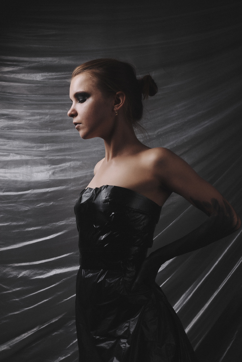 Сегодня я хотел бы показать кадры с одной нашей съемки и рассказать историю. Для данной съемки мы искали черное корсетное платье, очень важно было оставить открытыми плечи. Но к сожалению найти такое платье мы не смогли, но вышли из данного положения очень простым способом - сделали его сами. Так как изготовление корсетного платья занимает достаточно времени, помимо самого процесса создания, требуется найти подходящую ткань, мы решили выйти из ситуации самым простым способом - скотч и черная пленка! Что в купе с мейкапом создало именно то настроение в кадре, которого мы добивались. Данное платье мы планируем выполнить из ткани, и снова повторить данный фотосет, наверное с двумя моделями.