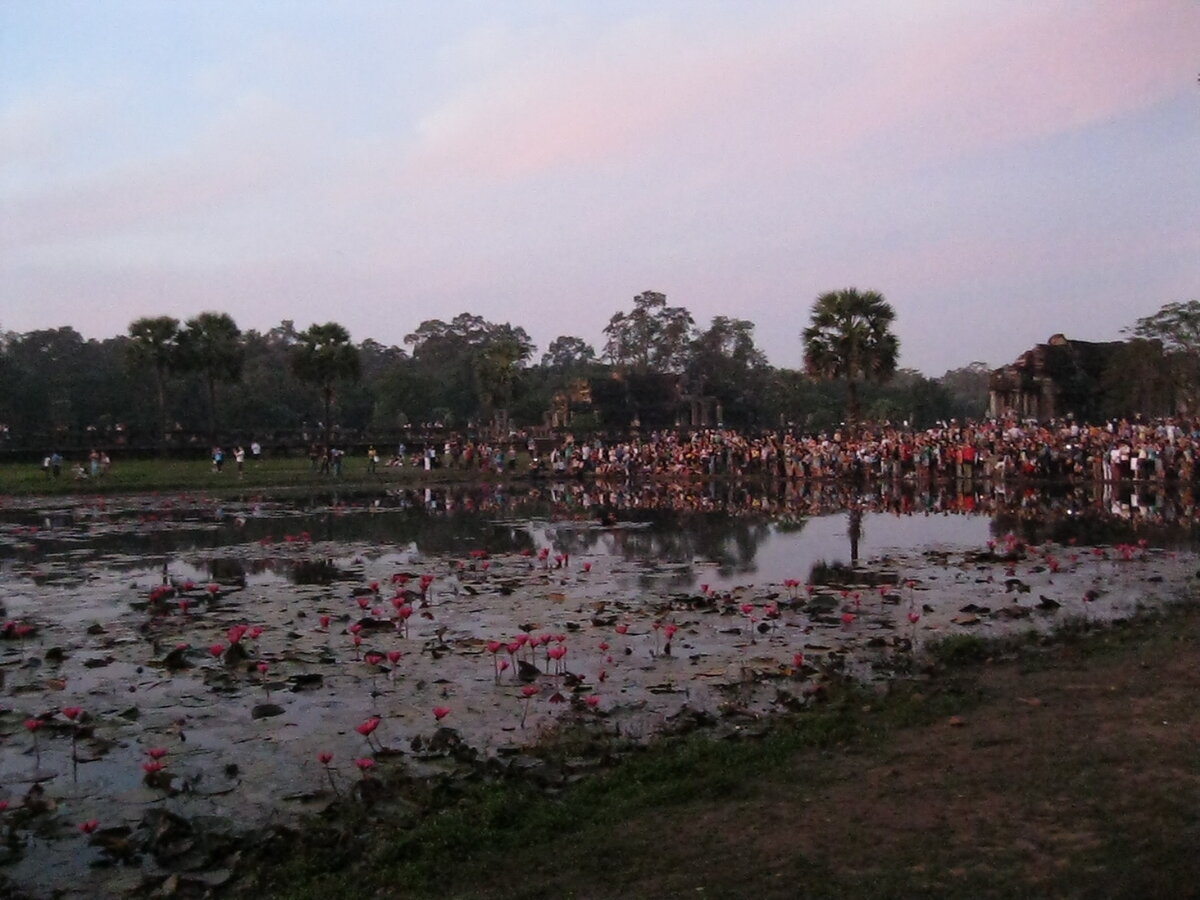 Рано утром третьего дня пребывания в Камбодже (городок Сием-Рип), еще в темноте, я поехал встречать рассвет в Ангкор-Вате. Очень любопытное действо, от которого у меня осталось самое яркое впечатление за всю поездку по Таиланду и Камбодже. Сбор людей, желающих встретить рассвет в Ангкоре, начинается еще в городе. Вереница различного транспорта направляется в археологический парк. Далее все распределяются по объектам, но большая часть направляется к Ангкору-Вату. В полной темноте и тишине на берегу пруда у Ангкор-Вата собирается немаленькая толпа народа. Постепенно начинается рассвет. Из темноты начинают проступать фантастические очертания Ангкор-Вата. Представляю, что там творилось накануне (21 декабря 2012 года), когда все ждали «конца света». В общем, очень, ну очень красиво. Что-то подобное я испытал, встречая рассвет на горе Синай в Египте. Далее я решил поехать в Байон. Без сомнения – этот храм суперсайт №2 в Ангкоре. Рано утром основная часть туристов остается в Ангкор-Ват