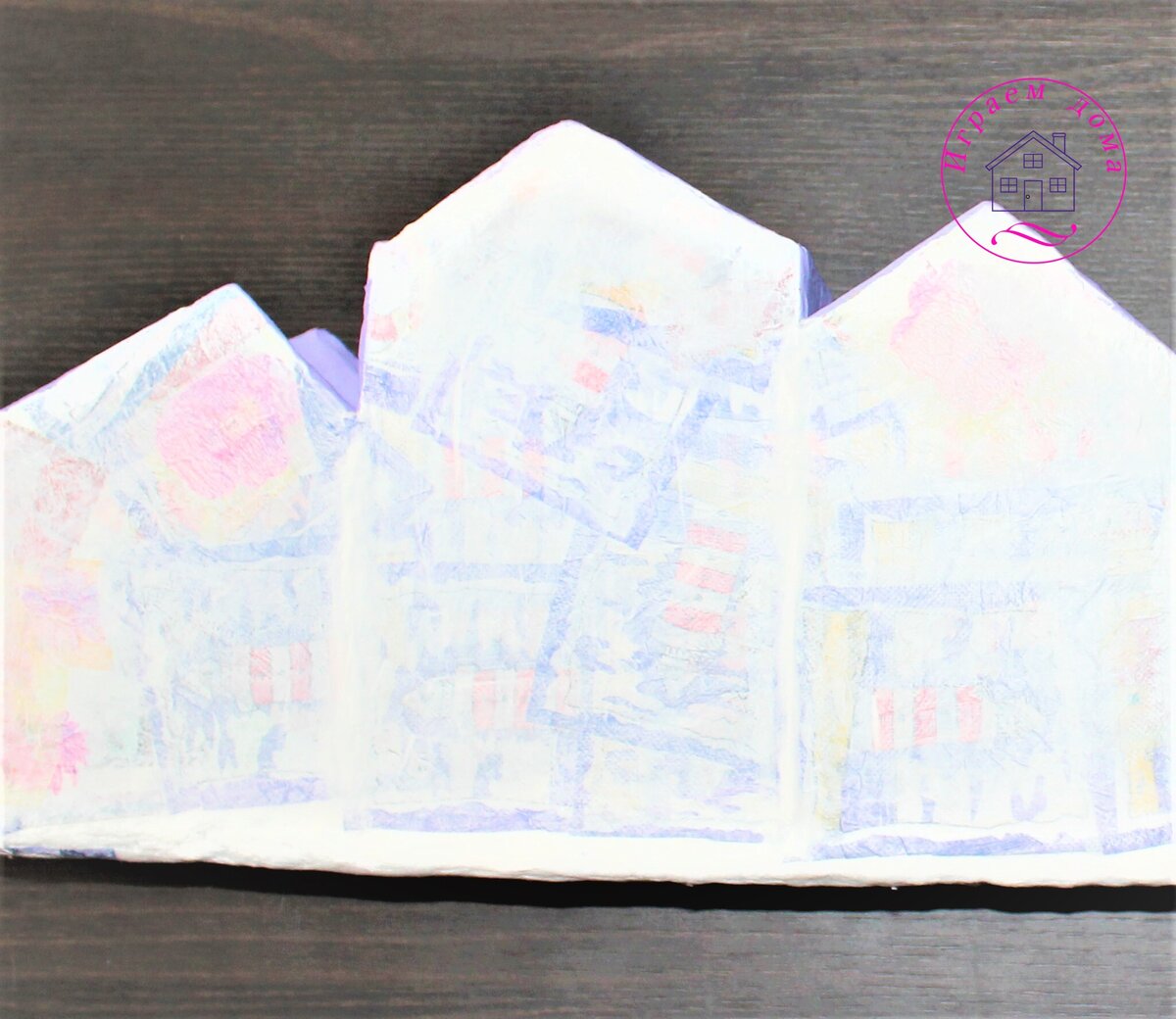 Популярные домики превращаем в полезный органайзер📎 Доброго времени суток. 😉 И так, первое сентября прошло. Начинаются, суровые школьные будни. 📚Давайте хоть немного раскрасим их в яркие цвета и сделаем очень нужную штуковину для школьников. Сейчас пошла новая волна, популярности домиков. Их делают из дерева украшая дом в эко-стиле. Попадаются домики и с практичным применением в виде ключниц. Мы предлагаем сделать школьный органайзер канцелярии. Будем придерживаться правила - "Никаких чётких граний." Это тоже сейчас модно. Материалы🔨: Картон, салфетки, клей ПВА, термоклей,грунт акриловый, акриловые краски, контуры, лак, украшения по вкусу, фетр. Склеиваем скотчем несколько листов А4 и рисуем домики. Совет💡: Разложите свои канцелярские принадлежности и посчитайте сколько вам потребуется домиков, какой ширины и высоты. Вырезаем из картона, три заготовки по шаблону. Это для одной стороны. Ещё три для другой. На термоклей соединяем три слоя между собой. В итоге у нас получаются дв