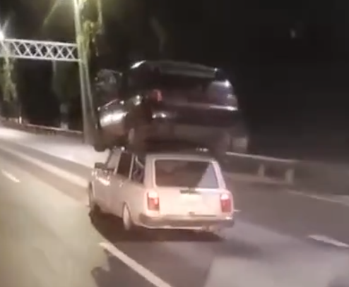 Дешевый и сердитый метод эвакуации - на крыше другого автомобиля
